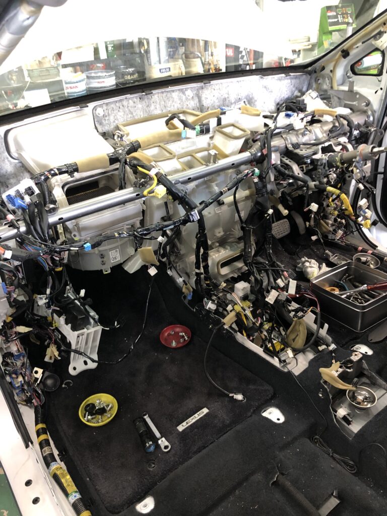 エバポレーターを交換するのにダッシュパネル、ユニットの